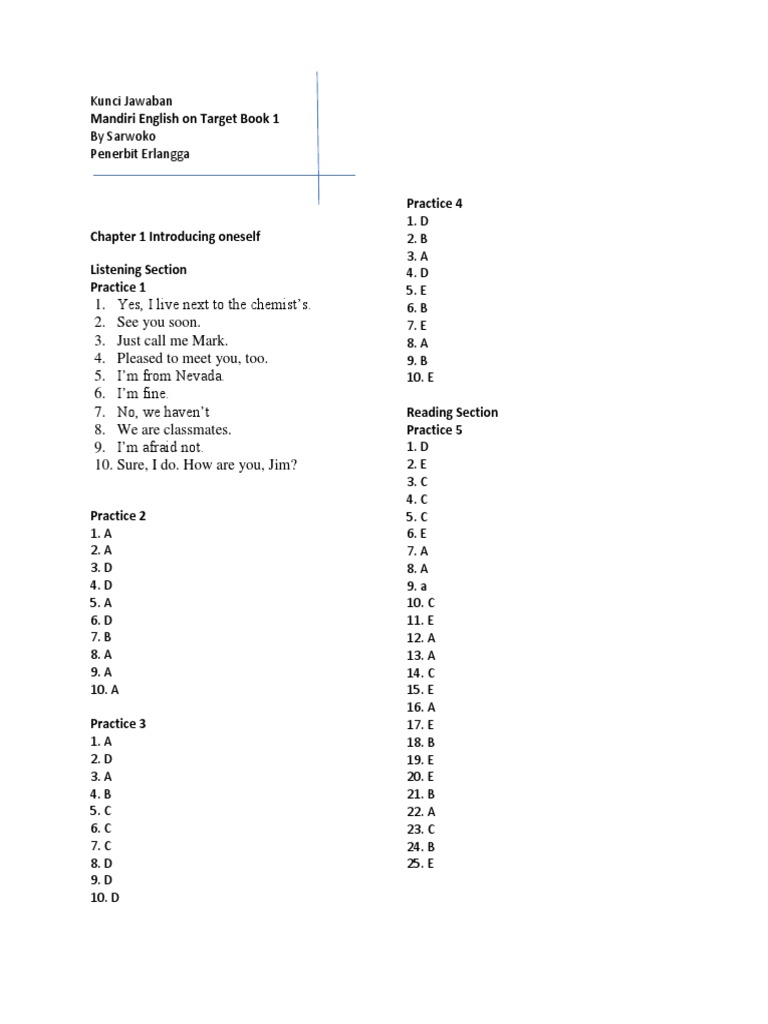 Kunci Jawaban Mandiri English On Target Book 1
