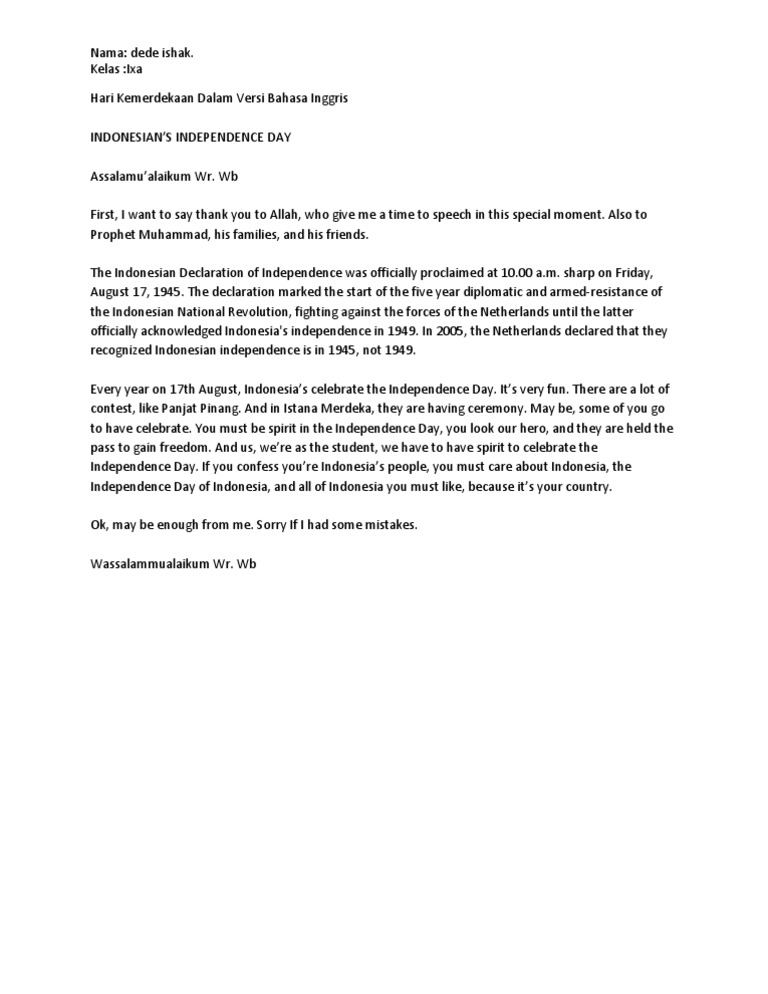 Hari Kemerdekaan Indonesia Bahasa Inggris